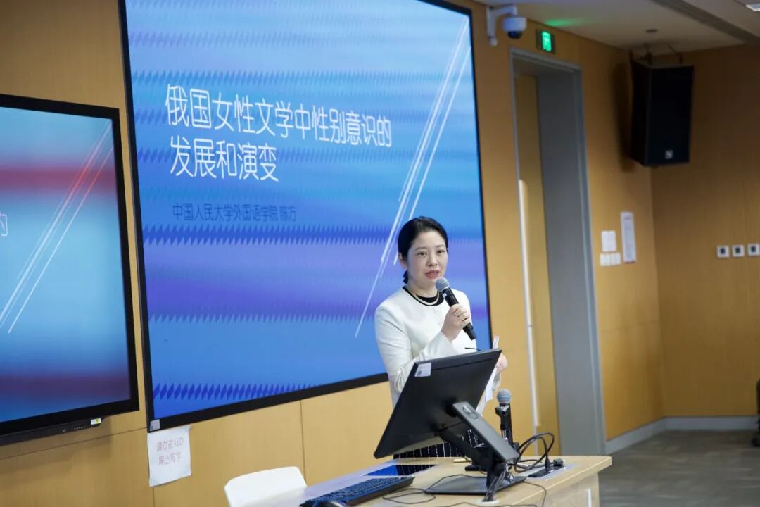 Chen Fang, Professor of the School of Foreign Languages of RUC delivered the speech with the topic “The Development and Evolution of Gender Consciousness in Russian Women’s Literature”. She reviewed the evolution of Russian women's literature over more than two centuries, and sorted out ”the evolution spectrum of female consciousness “ from 19th-century realism to contemporary literature.