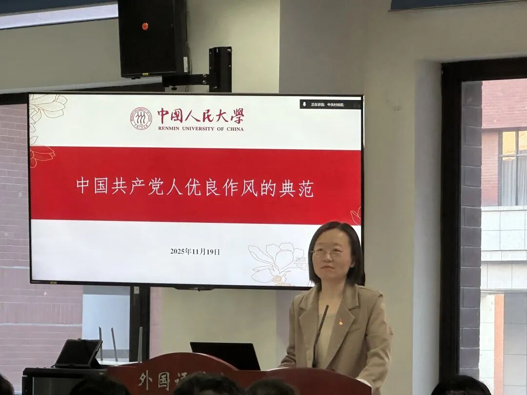 11月19日,外国语学院第29期党校专题讲座第三讲在中关村校区明德国际楼310大讲堂举行。学院党委副书记、纪委书记林媛以“中国共产党人优良作风的典范”为题作专题讲座,通过讲述毛泽东、周恩来、陈云等老一辈无产阶级革命家的感人事迹,生动阐释了中国共产党人的优良作风。第29期院党校中关村校区全体学员与各支部发展对象现场参与讲座,通州校区全体学员于北区学部楼233会议室线上参加。