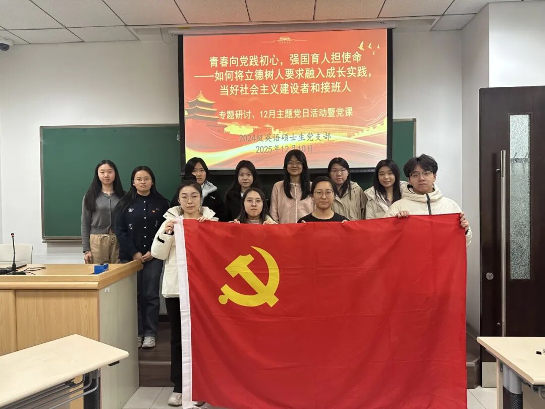 12月17日,MTI硕士生党支部举办“青春向党践初心,强国育人担使命——如何将立德树人要求融入成长实践,当好社会主义建设者和接班人”主题研讨会。支部党员围绕2025年秋季学期党员集中培训第二次大课的核心内容,紧密结合专业特色,深入探讨了如何将党的创新理论学习成果有效转化为锤炼本领、服务国家的实践动力。与会党员一致表示,将努力成长为既精通外语、又深谙国情,兼具家国情怀与全球视野的社会主义建设者和接班人。