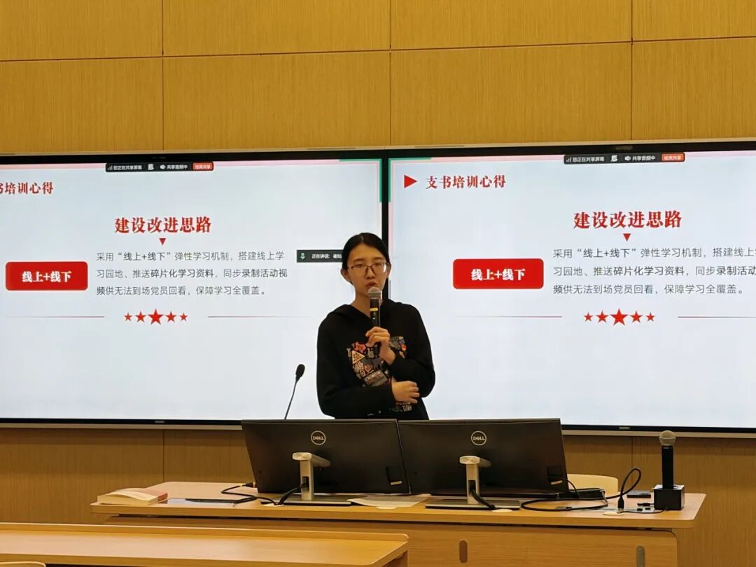 崔灿结合参加支部书记培训班的收获,围绕创新党员教育模式分享了思考。她强调,要健全“线上+线下”协同学习机制,完善学习反馈闭环,通过搭建线上学习园地、推送优质资源、提供活动回看等方式,拓展学习覆盖面、增强渗透力。她表示,将通过定期匿名问卷等形式广泛听取意见,持续优化支部建设,切实增强组织的凝聚力、向心力与战斗力。