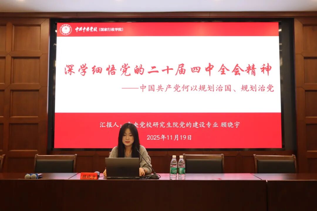 中央党校硕士研究生顾晓宇以“深学细悟党的二十届四中全会精神”为题,从历史逻辑与实践路径出发,系统解读了二十届四中全会精神。她阐释了党的全会制度与国家治理决策的内在联系,回顾了历届四中全会在破解发展难题、完善制度体系方面的重要作用,并重点分析了“十五五”规划作为基本实现社会主义现代化关键阶段的重要意义。她还深入论述了党通过规划实践推动自我革新的制度创新与路径探索,为在场学子全面把握“十五五”规划内涵提供了系统指导。