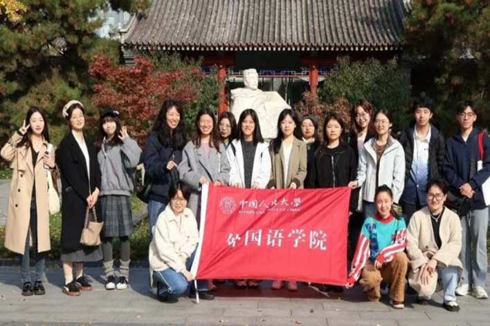 在文艺育人方面,我们注重以文化人、以美育人。原创话剧《成仿吾五译<共产党宣言>》成功演出,在艺术沉浸中深化理想信念;艺术团联合汇演“语宙漫游指南”以创新编排带来视听盛宴;参与排演“先锋·人大组歌”音乐舞蹈史诗,以《就追那一束光》回溯光荣传统。此外,举办首届跨文化交际座谈会、“校友亲子英语课堂”及“月出汉关,音起幽燕”国际诗歌朗诵会、2025届毕业生欢送会,搭建跨代际、跨文明的对话平台,提升学生的文化感知与情感共鸣。