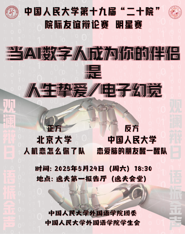 在视觉支持与赛事宣传方面,我们强化专业协同与品质呈现。为“二十院”辩论赛等跨院活动提供全流程视觉设计,提升赛事形象与影响力;围绕奖学金答辩、学术讲座、节日专题等制作系列主题海报,做到信息清晰、设计美观、风格统一,有效增强各类活动的传播效果与参与体验。
