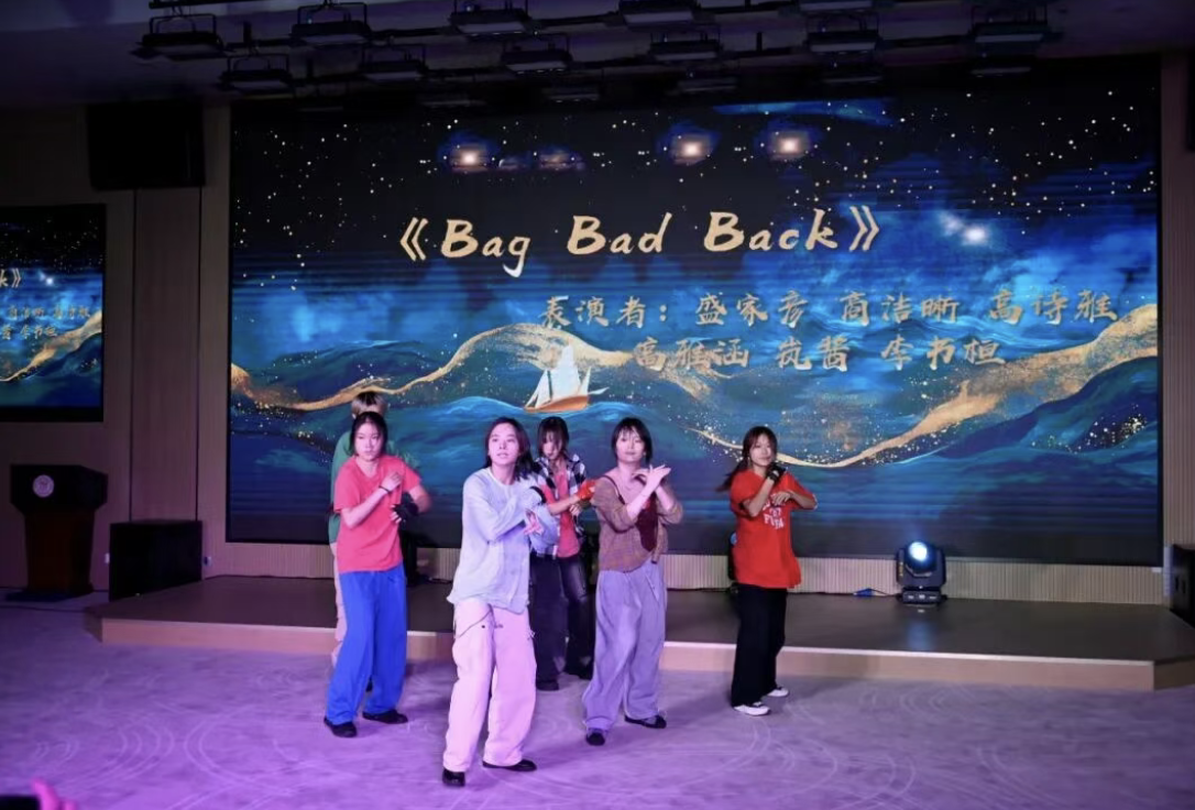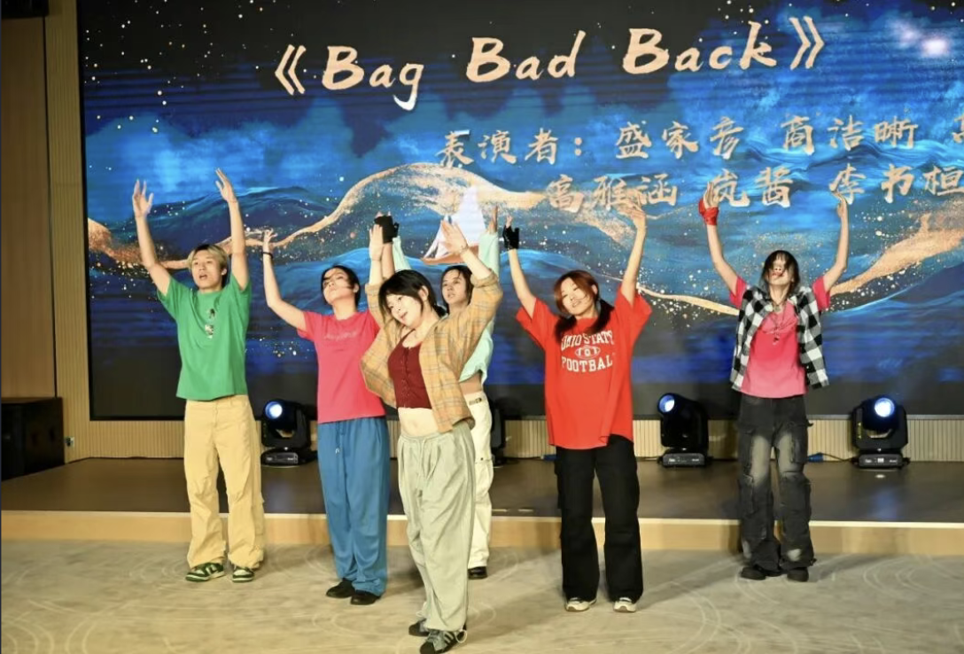 舞蹈《Bag Bad Back》以动感节拍点燃全场,盛家彦、商洁斯等同学的演绎飒爽利落,瞬间引燃气氛。