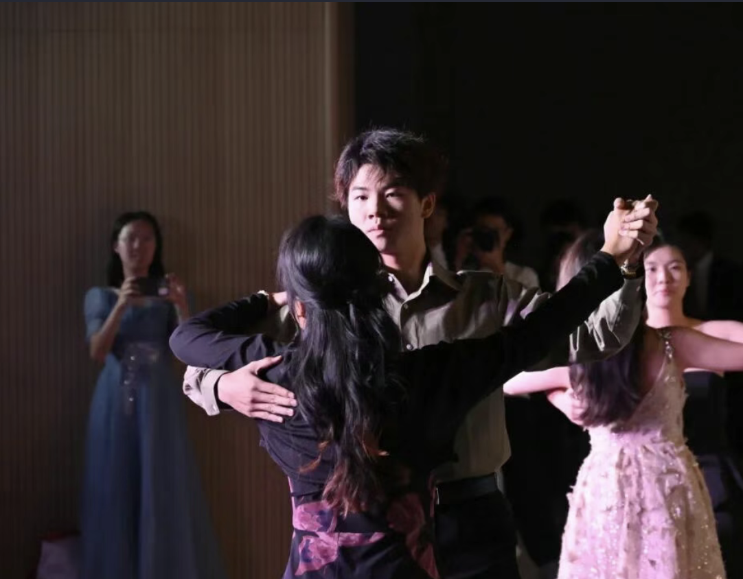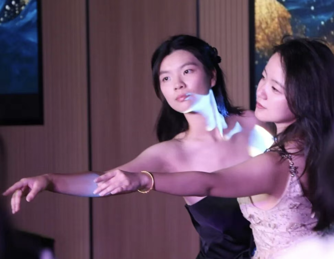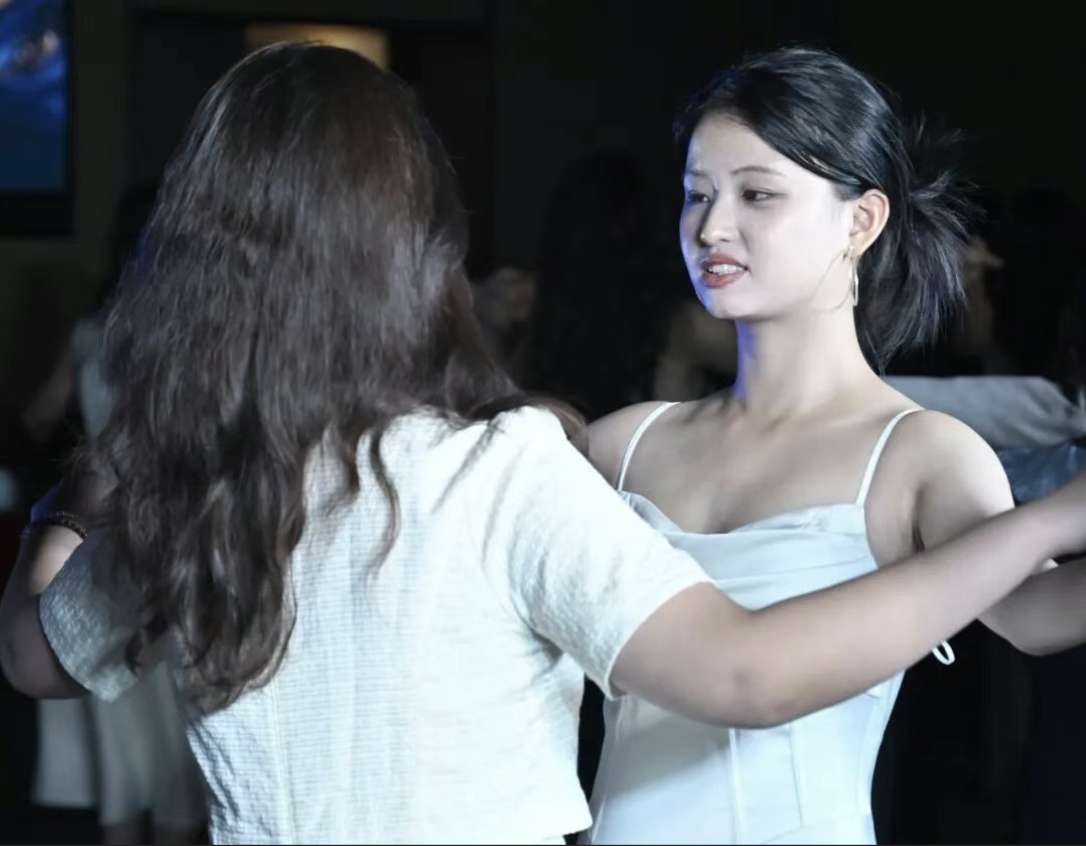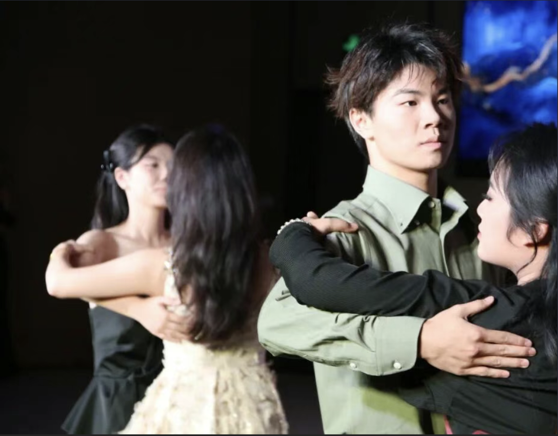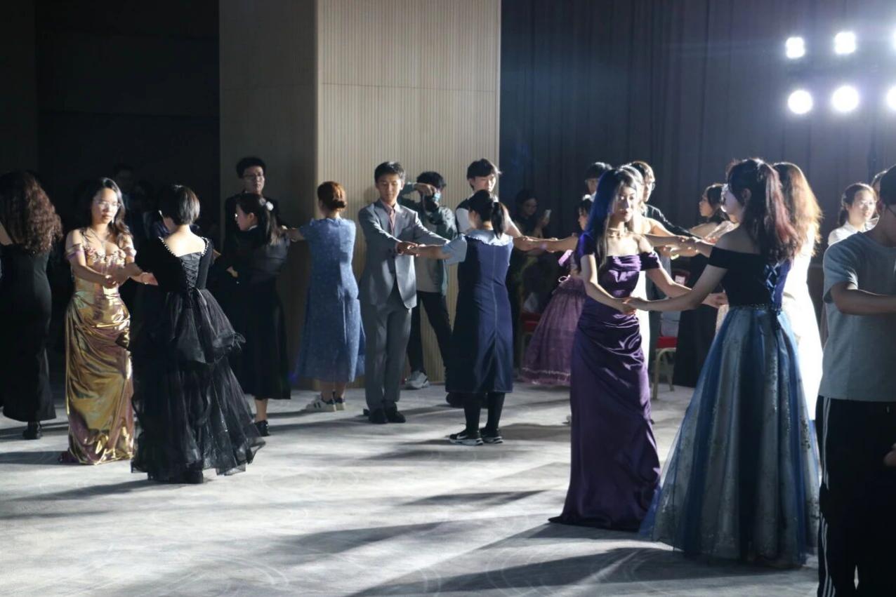 同学们在舞池中旋转、回身、对视,衣袂飞扬间,是初见的羞涩,也是默契的绽放。
