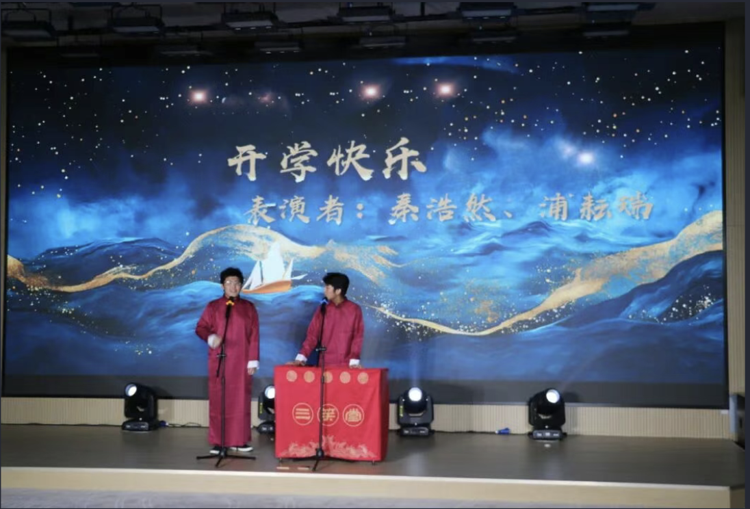 秦浩然、浦振瑞的相声《开学快乐》妙语连珠,笑声不断,为舞会注入一抹轻松欢快。