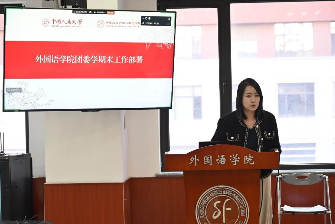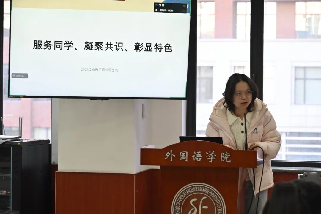 深入学习贯彻党的二十届四中全会精神,推动各班级、团支部高效落实相关工作,进一步加强组织凝聚力与战斗力,12月5日,外国语学院在明德国际楼310教室举行2025-2026学年秋季学期班团集体学习会。外国语学院党委委员、日语系青年教师邹文君,外国语学院2024级硕士研究生、纪念中国人民抗日战争暨世界反法西斯战争胜利80周年大会志愿者钱婧瑜,外国语学院2019级本科生、优秀退伍大学生士兵王思翰,外国语学院2024级非通用语种硕士生班班长、优秀班团集体代表王钦作主题分享。外国语学院团委书记刘心怡、团委副书记闫宇菲出席会议。外国语学院全体班长和团支书参加学习。本次会议围绕精神传达、经验交流与工作部署展开。