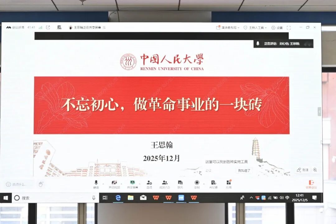 邹文君以宏阔的历史视野和深刻的时代关切,对党的二十届四中全会精神作了系统阐释和深入导学。他立足中华民族伟大复兴战略全局,从全会召开的重大意义与历史方位切入,深刻阐明其作为新时代新征程重要里程碑的理论价值与实践指引;梳理学习全会精神的主要依据与核心遵循,解读“十五五”时期发展的指导方针与目标体系,落脚于贯彻落实的实践路径。在阐释如何自觉践行全会精神时,他聚焦建设教育强国的时代使命,寄语青年学子:“要筑牢思想根基,做全会精神的坚定信仰者;锤炼过硬本领,做高质量发展的有力推动者;投身实践行动,做中国式现代化的积极建设者;涵养品德修为,做新时代的有为青年。”他贯通学理深度与育人温度,引导班团骨干从时代坐标中认清方位、在理论清醒中坚定行动,以扎实的理论功底和真挚的育人情怀,推动了全会精神从“入耳”到“入心”、从“知信”到“行践”的深层转化,为班团骨干提升政治素养、强化使命担当注入了坚实的思想动能。