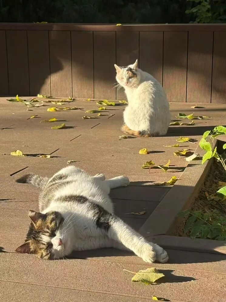秋意暖阳下,银杏坠慵懒,猫卧更闲。