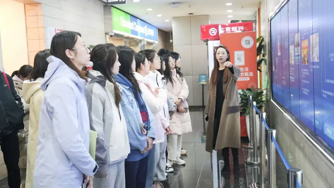 企业招聘渠道专员张伊雯带领同学们参观了阅读书店与企业发展墙,展示了新东方集团三十余年的发展沉淀与社会担当。新东方的发展历程深刻证明,企业若想行稳致远,离不开持续的创新能力和深厚的责任担当。对于青年而言,唯有紧跟时代步伐,不断提升专业素养与实践能力,才能在时代机遇中找准自身定位,实现个人价值,与社会发展同频共振。