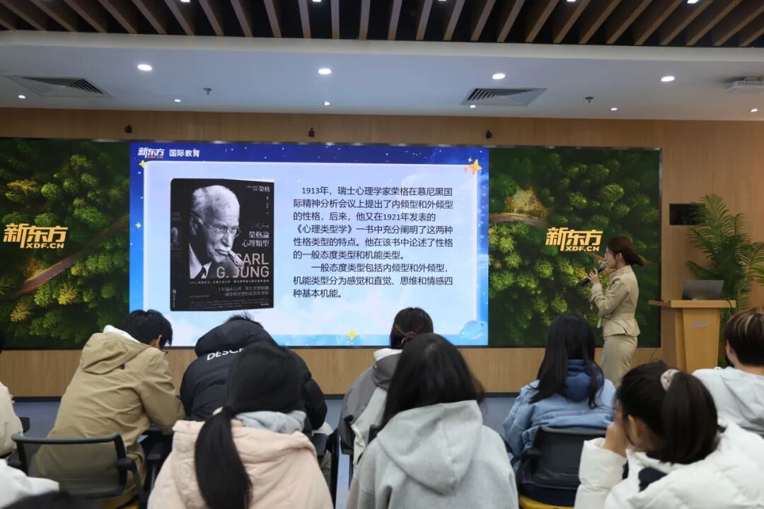随后,张伊雯详细介绍了新东方的人才培养模式等,让同学们清晰认识到新东方对于员工成长的重视与投入。她结合教培行业的人才需求,指出在当今就业市场中优秀的外语人才不仅要具备扎实的语言基础,更需要拓展“语言+”的复合背景。她鼓励同学们积极参与实习,探索个人兴趣与职业方向,将理论知识转化为解决实际问题的能力,从而提升就业核心竞争力。