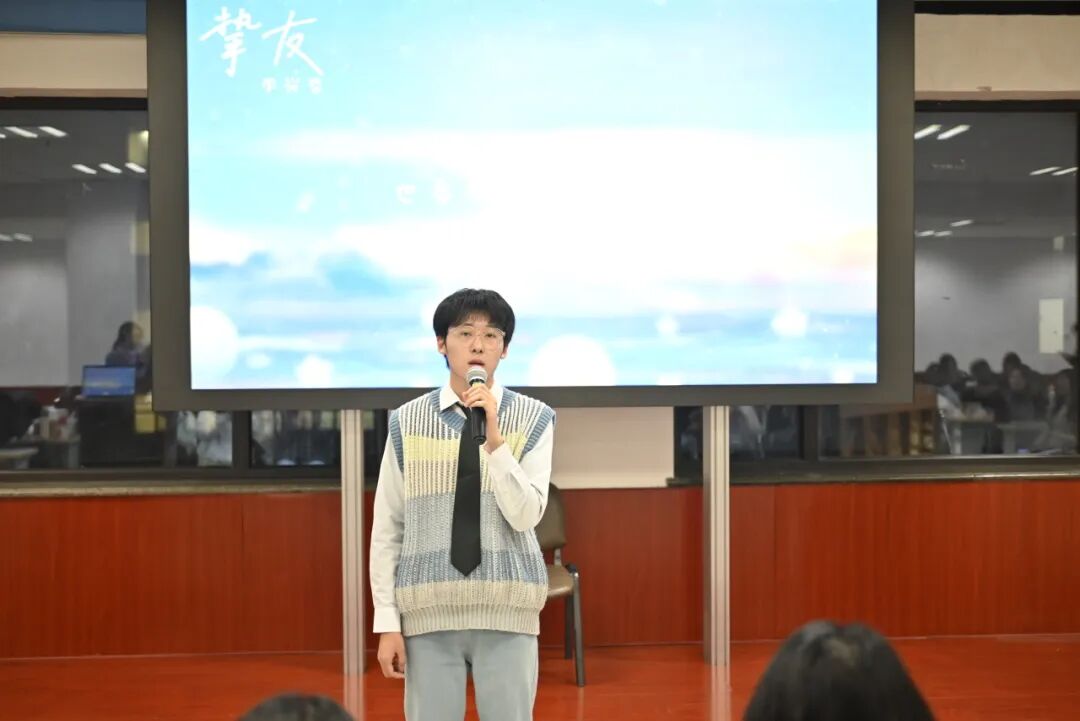 帷幕轻启,暖场首音由外国语学院代表队奏响。一曲《就追那一束光》点亮在场的所有期待。那歌声不仅是旋律,更是默契与共鸣的交织,将连日来反复打磨的汗水与并肩训练的欢笑,悉数融入了每一个音符之中。舞台上流转的,是他们对信念的坚持,对艺术的热忱;那穿透黑暗、追寻光芒的,正是每一位外院人独一无二的璀璨青春。