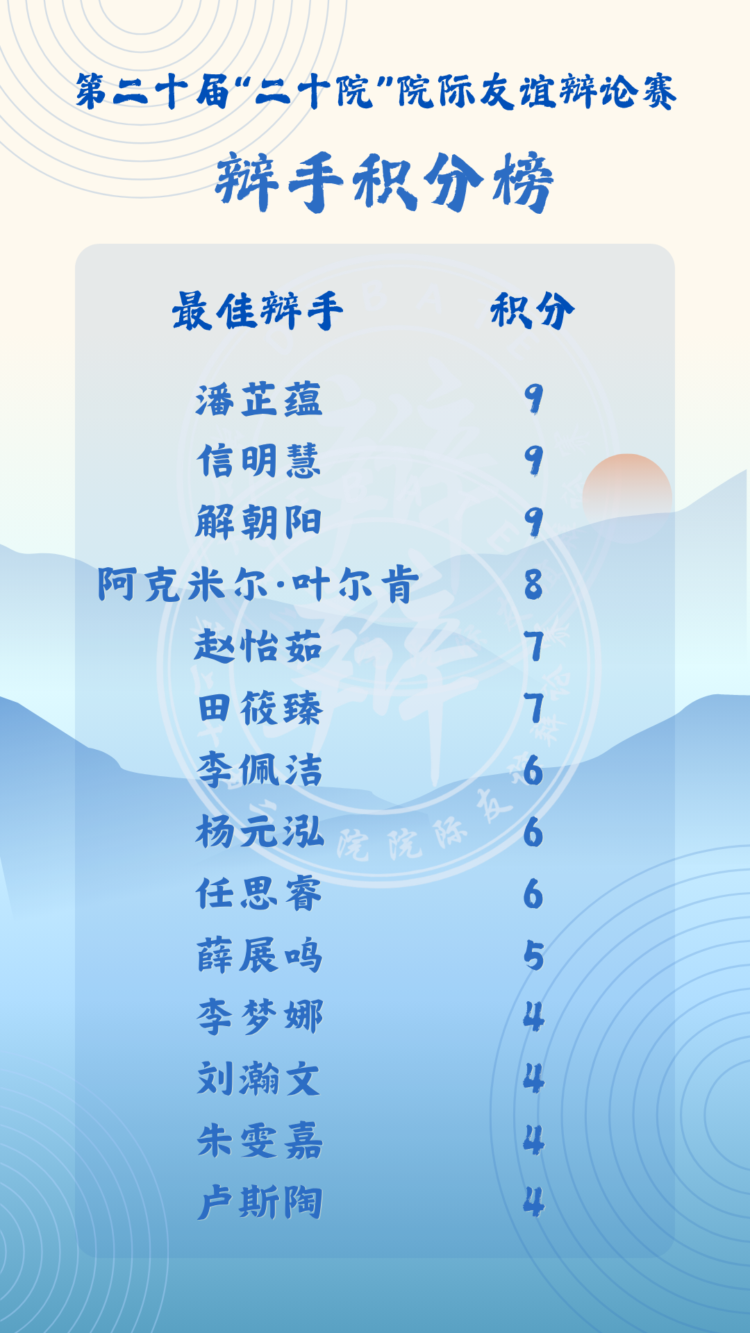 “二十院”辩论赛第一轮小组赛顺利结束,