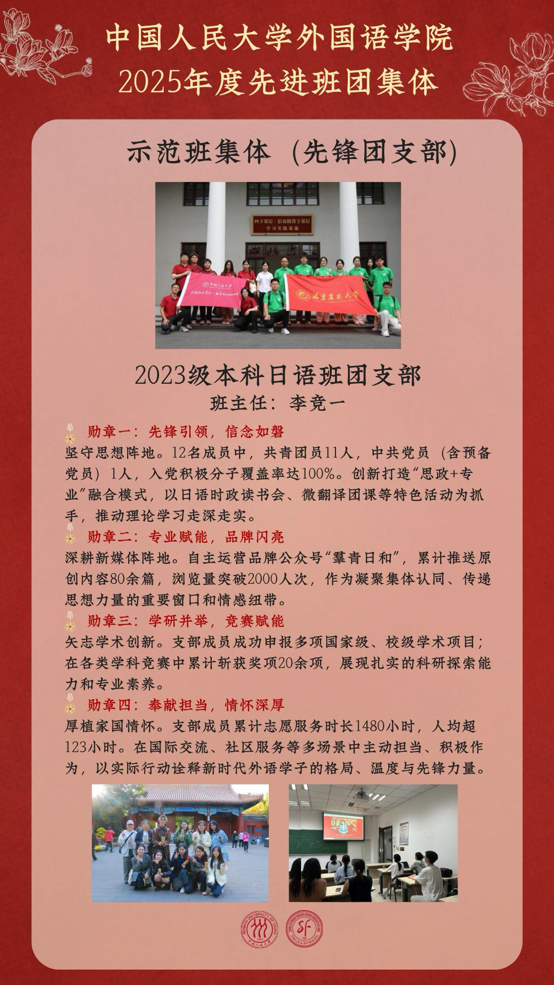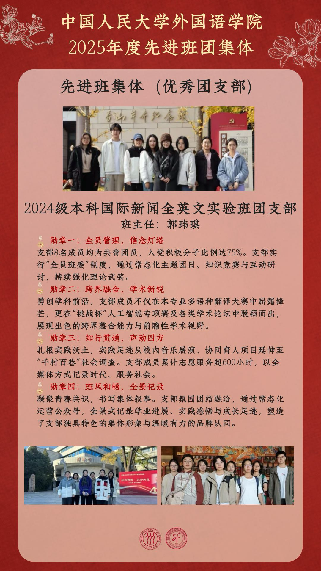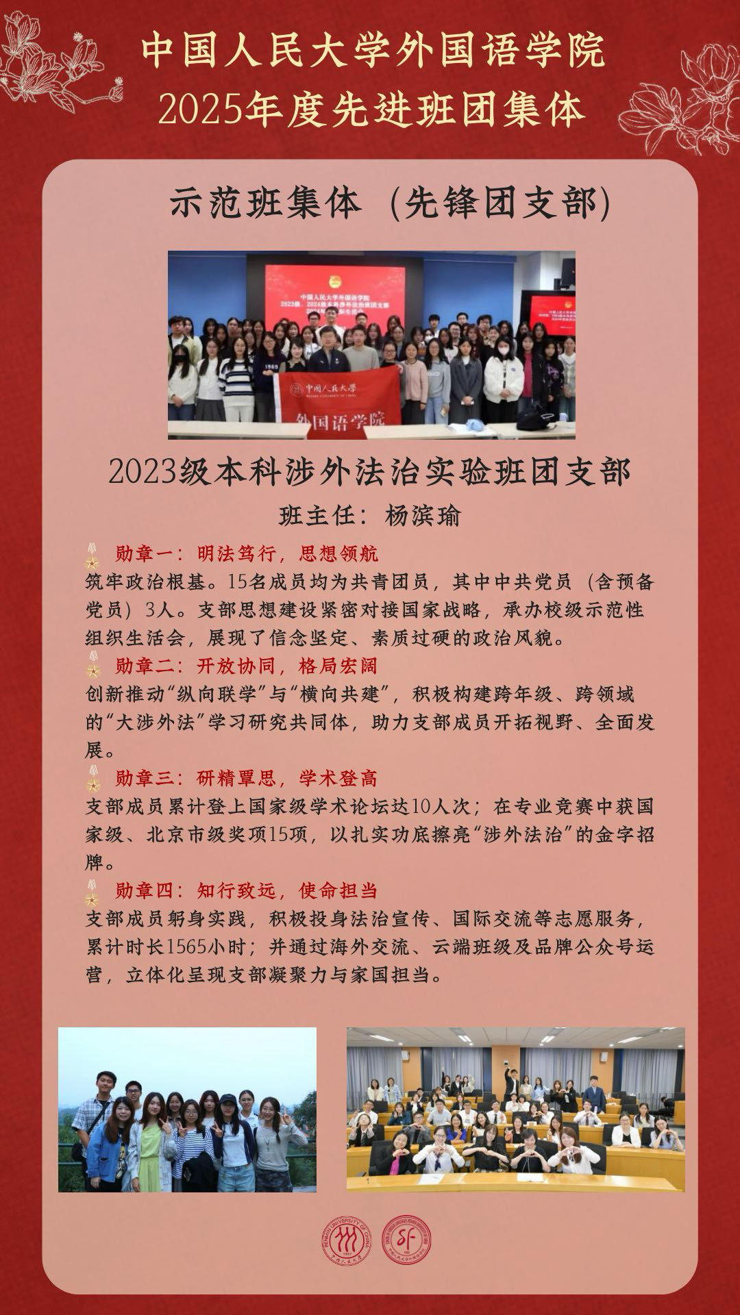 嘉奖,聚力,开新局:外国语学院多个班团集体获中国人民大学2025年度表彰!