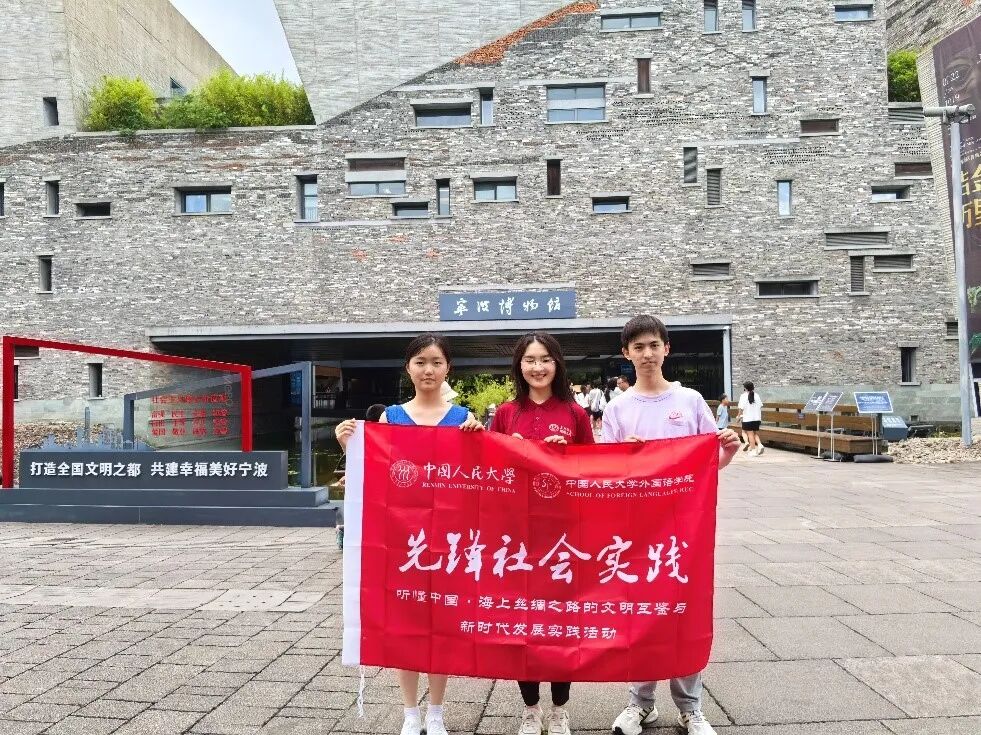 宁波,简称“甬”,这座国家历史文化名城自古因港而兴,是海上丝绸之路的东方始发港,自古以来就承担着内外商业贸易、文化交流的重任;同时,宁波也是中国大运河的起点,是内河航运与海运的重要枢纽。为深入探寻这一古老商路的深厚底蕴,更好地向世界讲好中国故事,中国人民大学外国语学院“海上丝绸之路的文明互鉴与新时代发展实践”宁波实践团于2025年7月22日至7月24日前往浙江省宁波市调研学习。