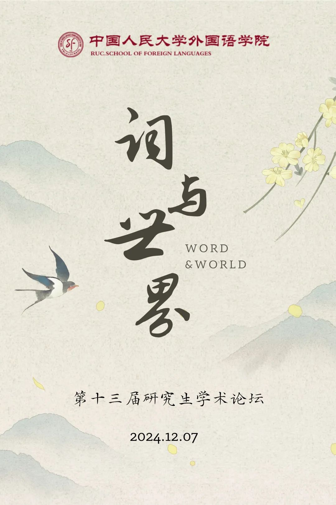 邀请函|中国人民大学外国语学院第十三届“词与世界 · Word & World”研究生学术论坛
