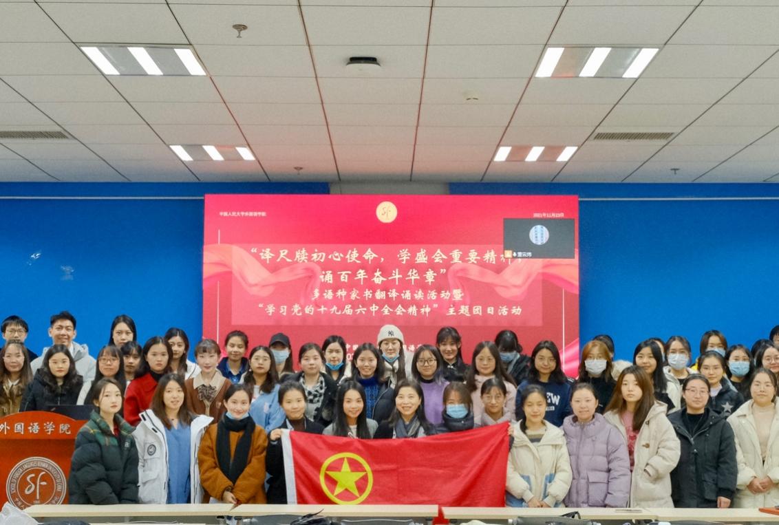 高举思想旗帜,以78.3%的中共党员及入党积极分子为建设基础,开展“庆祝建党100周年”中国人民革命军事博物馆参观等联合“党·团”活动。累计开展11次主题团日活动,3次红色主题参访活动,参与校“第一封家书”活动,共寄家书30余封,在此基础上探索创新,开展家书多语种外译活动。