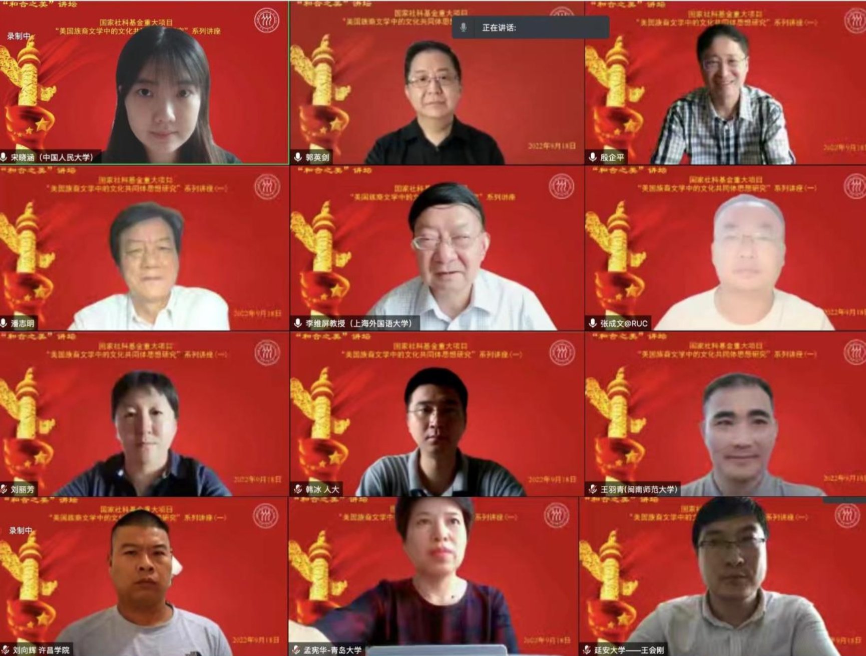 国家社科基金重大项目“美国族裔文学中的文化共同体思想研究”系列讲座 “共同体与文化共同体概念辨析”第一讲成功举办