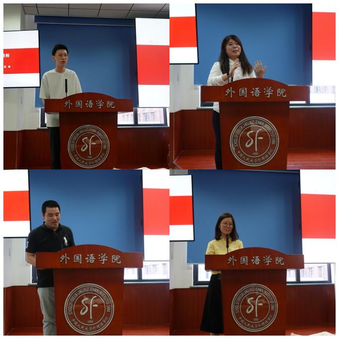 新学期学院大会上,阎芳书记向全体教职工介绍了学院新入职的法语系王智超、大英教学部杨滨瑜、俄语系张猛、德语系张敏四位老师,并代表学院欢迎新教师加入外院大家庭。四位教师表达了来到人大工作的激动之情,并表示将认真做好教书育人与科学研究工作,多向学院同仁前辈学习。