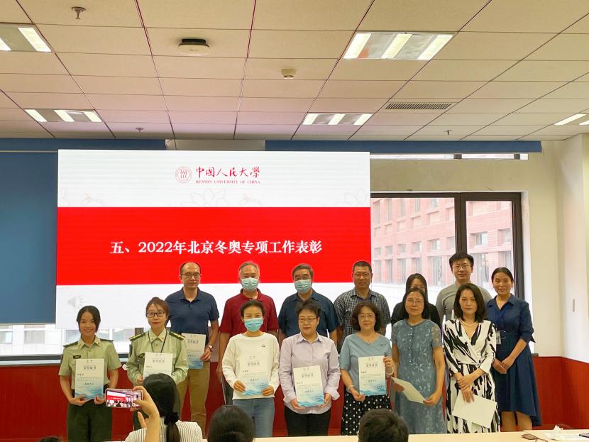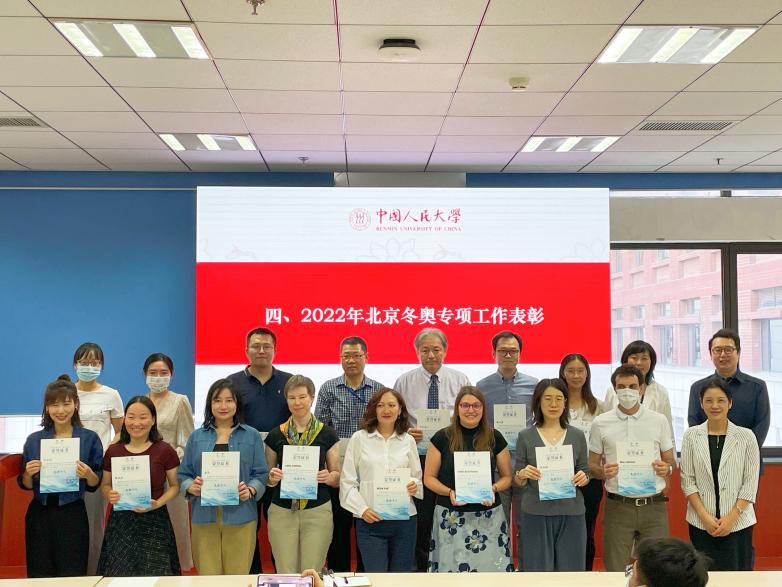 我院多位老师参与了2022年北京冬奥会的新闻翻译和对外传播工作。为感谢他们的辛苦付出,会上举行了2022年北京冬奥专项工作表彰仪式。阎芳书记宣读冬奥会表彰名单,并向他们表示感谢和致敬。