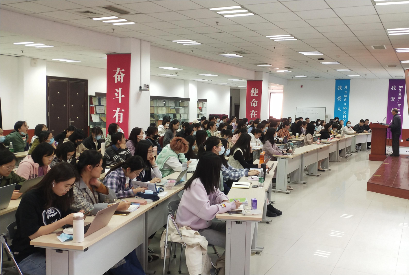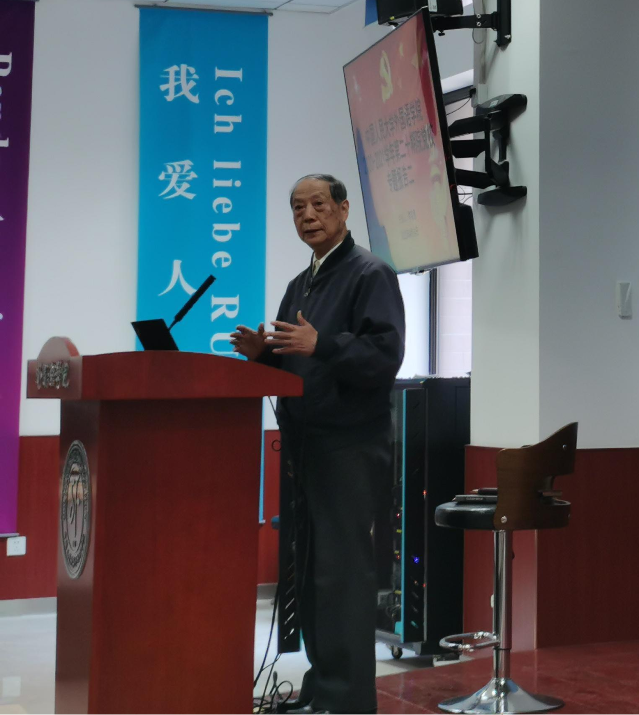 报告会分为两部分进行:一是由李宗惠教授做现场报告,题为“做新时代有理想有担当的好青年”;二是集体观看俄语系离退休教师、抗美援朝纪念章获得者刘季华教授的采访纪录片。