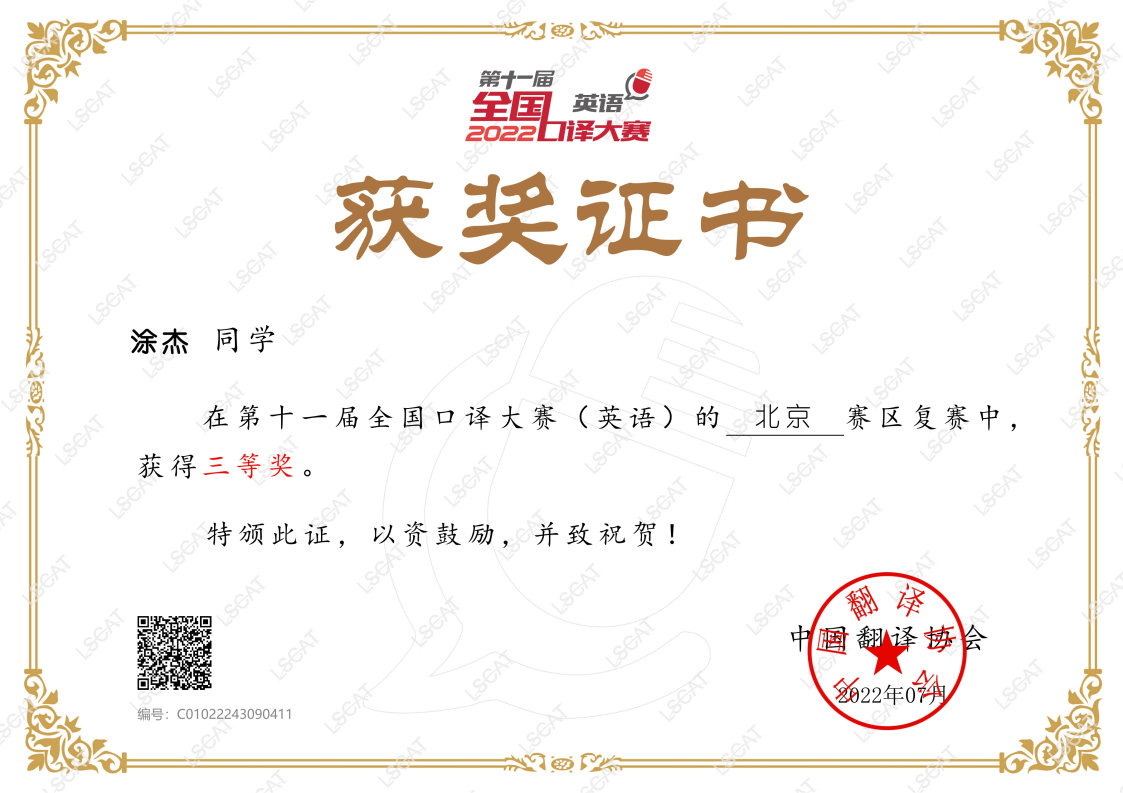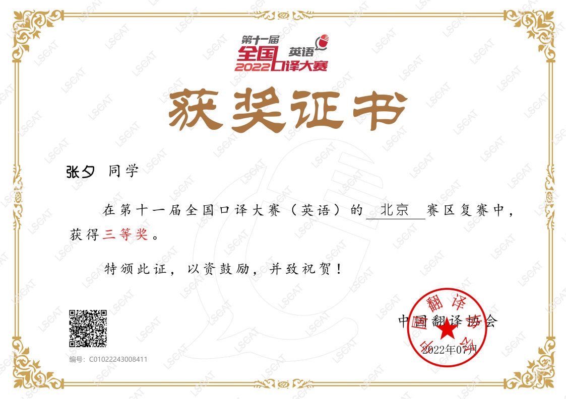 MTI硕士2021 级向俊璋同学获得一等奖,MTI硕士2021级陶明辉同学获得三等奖,英语语言文学硕士2020级涂杰同学获得三等奖,本科2019级国际新闻全英文实验班肖博文同学获得三等奖,本科2019级英语系张夕同学获得三等奖。