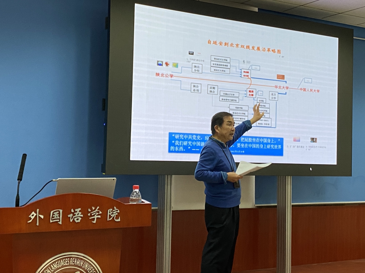 为将党史学习教育走深走实、充分发挥党的历史资政育人作用,4月21日下午,中国人民大学外国语学院第四场党史学习教育主题讲座在明德国际楼310举行。本次讲座由中国人民大学校史研究室研究员王学军教授主讲,外国语学院党团学办公室主任商竞老师主持。校党史学习教育第一指导组副组长陈璞老师、组员宫平老师,外国语学院党委书记阎芳老师、党委副书记黄岩老师,学生党支部、团支部代表以及院党校第20期入党积极分子培训班全体成员参加了本次讲座。