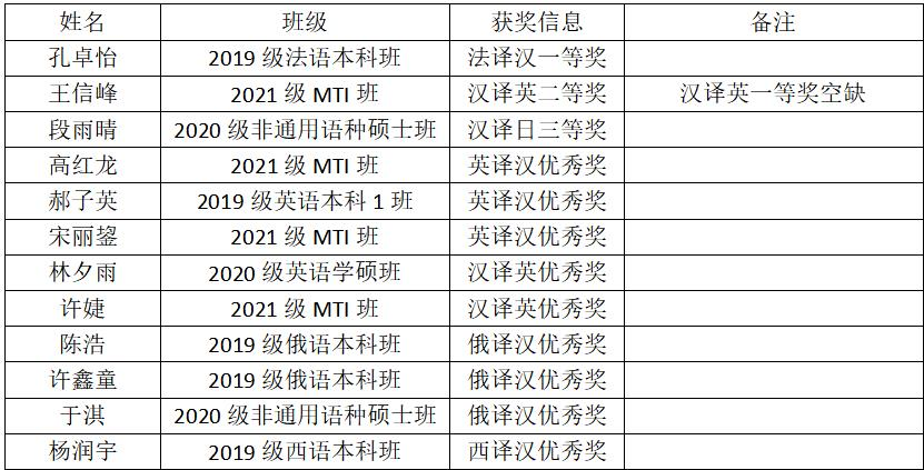 人大外国语学院学生在第三十四届韩素音国际翻译大赛中再创佳绩