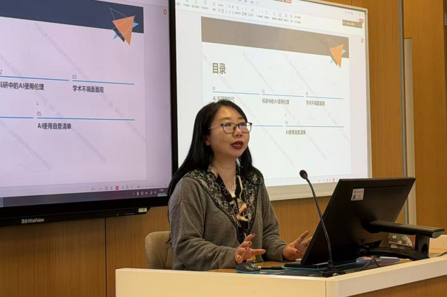 中国人民大学外国语学院英语系副教授要新乐将目光投向AI技术应用的伦理维度。她围绕AI生成内容的学术贡献界定、数据处理偏见规避、算法黑箱破解等核心议题,结合典型案例进行了深入剖析,并提供了实用的学术论文写作AI使用自查清单。本讲座引导同学们在积极拥抱技术的同时,牢固树立科研诚信意识,确保技术创新在伦理与规范的轨道上助力学术进步。