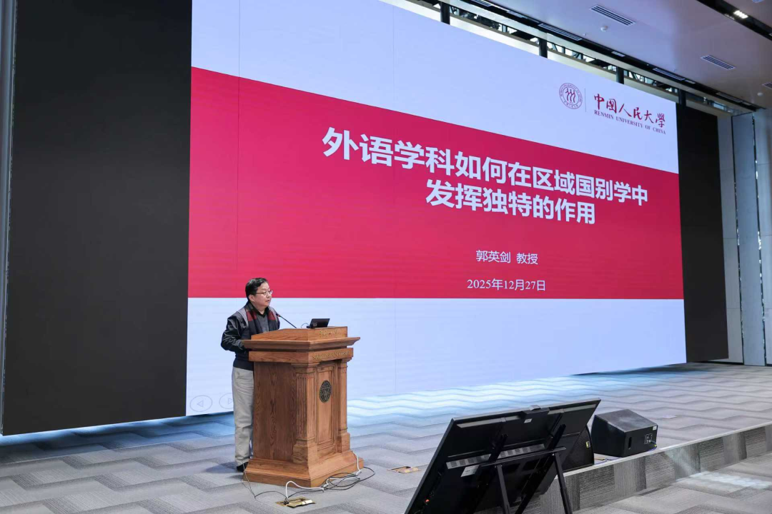 中国人民大学全民阅读教育研究院院长、吴玉章特聘教授、外国语学院二级教授、博士生导师郭英剑教授应邀出席大会,并作题为“外语学科如何在区域国别学中发挥独特的作用”的主旨发言。
