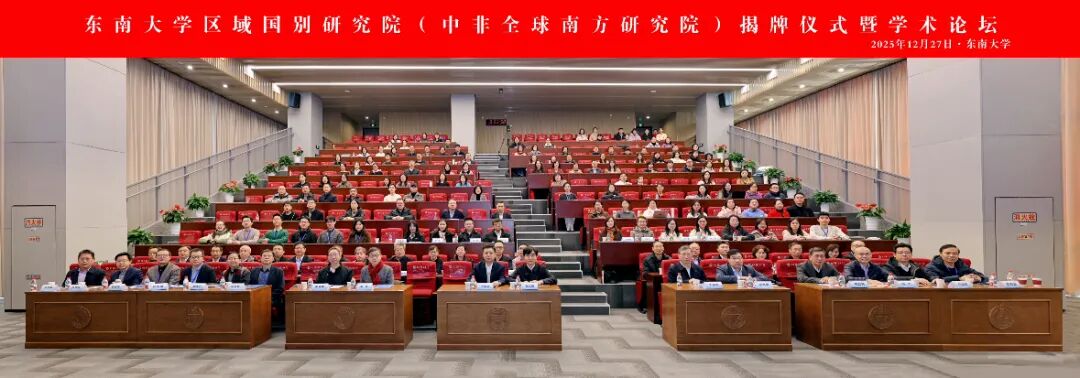 2025年12月27日,由东南大学区域国别研究院与外国语学院联合主办的东南大学区域国别研究院(中非全球南方研究院)揭牌仪式暨学术论坛在东南大学九龙湖校区成功举行。来自全国42所高校、科研院所及政府部门、出版单位的专家学者和领导,与东南大学师生代表齐聚金陵,共同探讨区域国别学学科高质量发展与推进全球南方合作新路径。