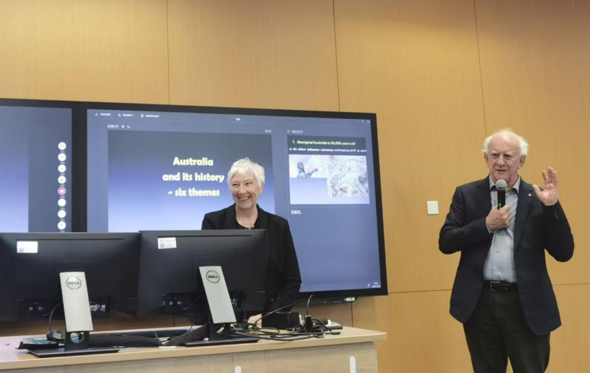 论坛第一部分围绕“澳大利亚历史”展开,由中国人民大学英语系教师张磊博士主持。澳大利亚社会科学院院士,澳大利亚人文科学院院士David Walker教授和澳大利亚莫纳什大学Karen Walker教授作了“澳大利亚及其历史的六个主题”的主旨发言。两位教授系统回顾了这片大陆从原住民文明至今的发展脉络。David Walker教授强调澳大利亚原住民文化是“延续至今最古老的文明之一”,拥有超过六万年的历史。他系统梳理了欧洲殖民、农牧矿业发展、1901年联邦成立、1972年社会文化转型,以及中国成为澳大利亚最大贸易伙伴等关键历史节点。David Walker教授指出,澳大利亚从一个以英国文化为主体的国家,逐步发展为拥有300多种族裔背景的多元社会,这一历程体现了其文化的韧性与开放性。
