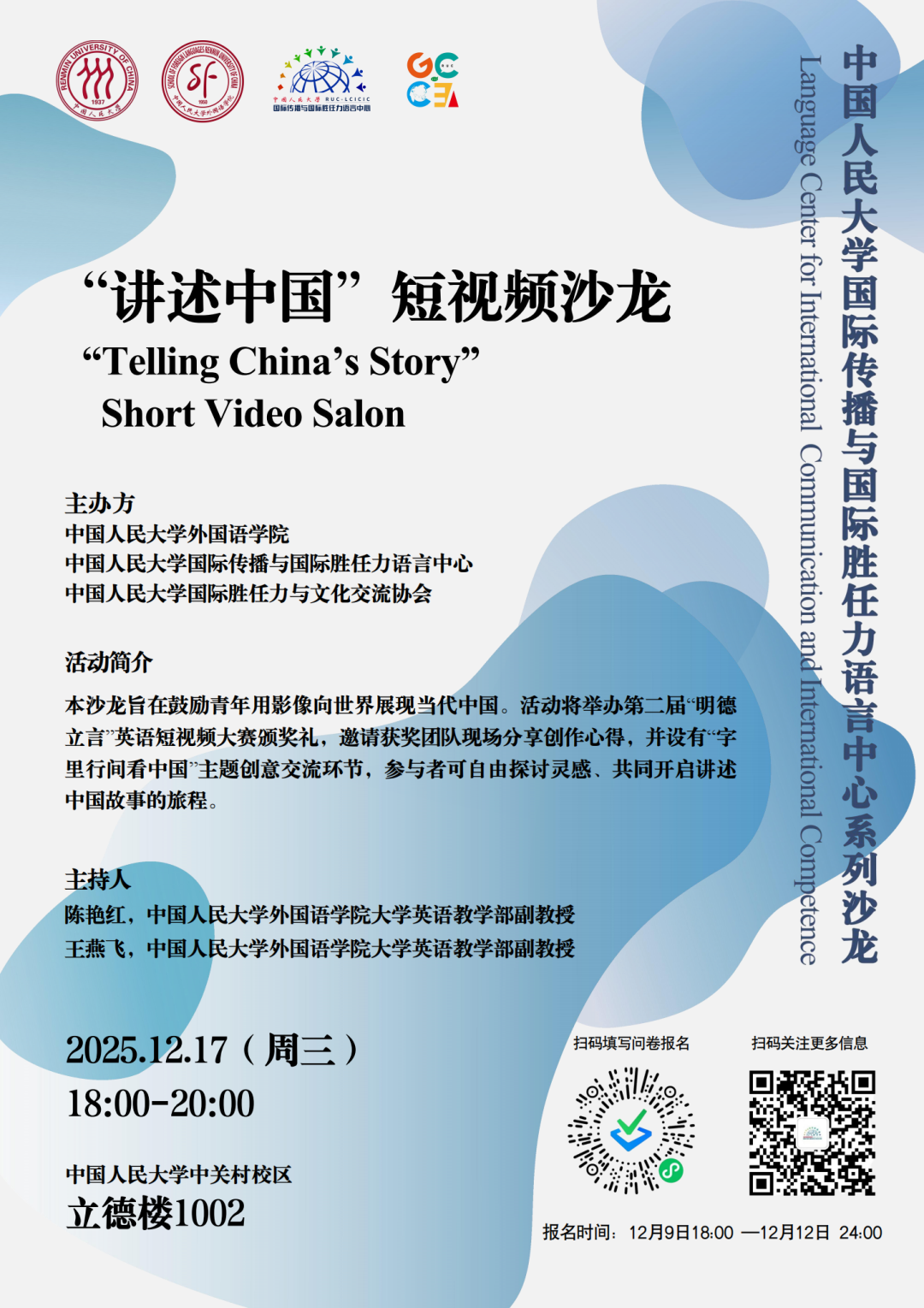 “讲述中国”中国人民大学“明德立言” 第二届英语短视频大赛 |
