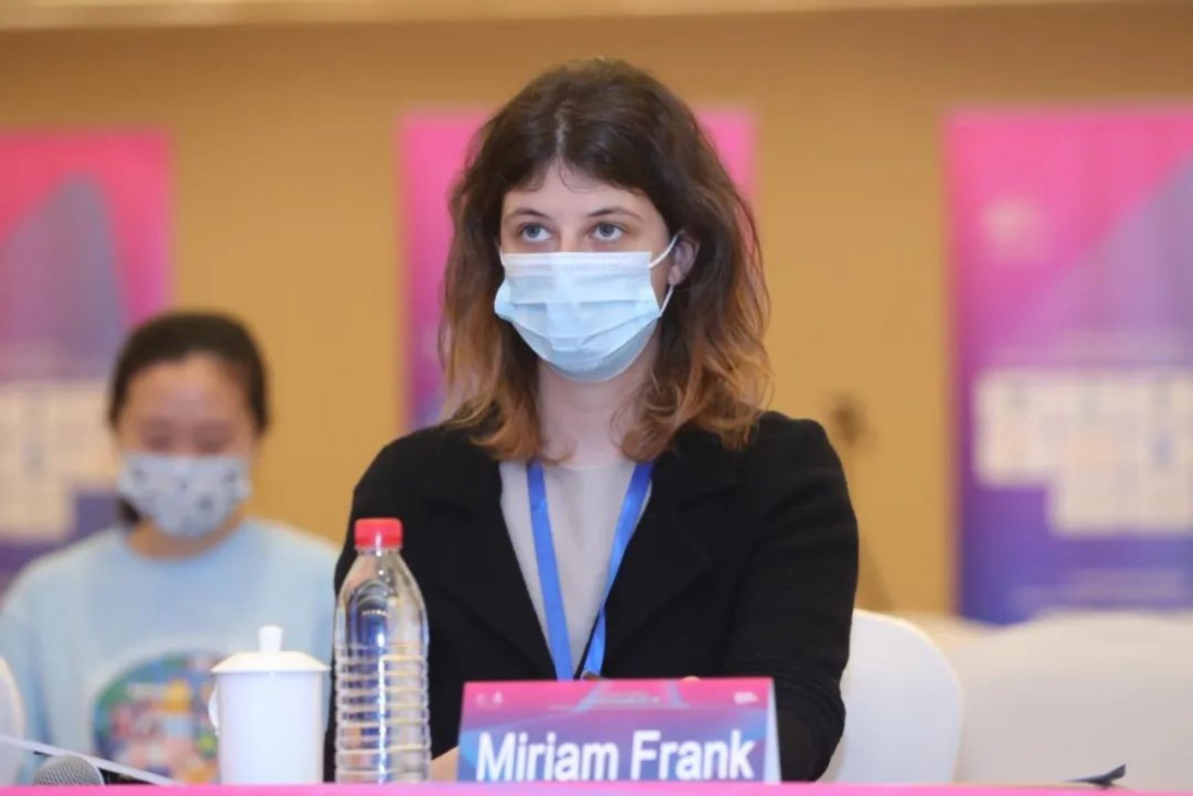 现场评委,来自中国人民大学外国语学院的Miriam Frank老师对选手提问