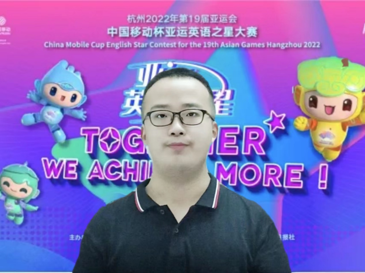 2022年第19届亚运会“中国移动杯亚运英语之星”大赛由杭州亚组委、中国日报社、中国移动联合主办,获得亚组委2021年33号文件批复。杭州亚组委是经国务院批准成立的独立事业法人单位,组委会主席为国家体育总局局长和浙江省省长。参赛选手来自全球30余个国家和地区,共计近5万名选手。高校组涵盖全国众多知名大学,其中复旦大学、浙江大学等高校举办了校内线下落地赛。本竞赛复赛晋级4000名选手,决赛晋级400名选手,全国总决赛一等奖占晋级总决赛选手百分之二十。